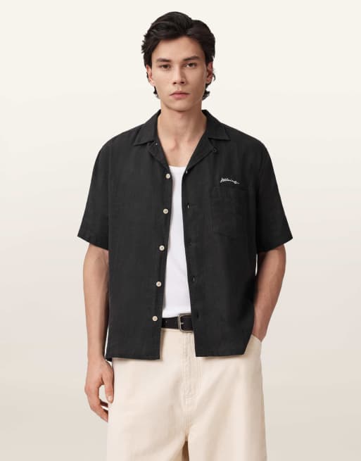 AllSaints – Wilder – Kurzärmliges Hemd in Schwarz