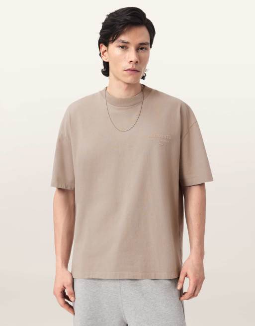 AllSaints – Xander – Kurzärmliges T-Shirt in Dämmerungsweiß mit Rundhalsausschnitt