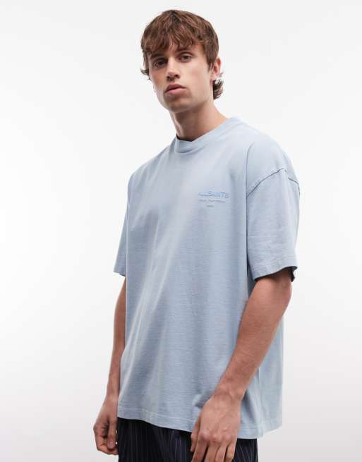 AllSaints – Xander – Kurzärmliges T-Shirt in Hellblau mit Logo