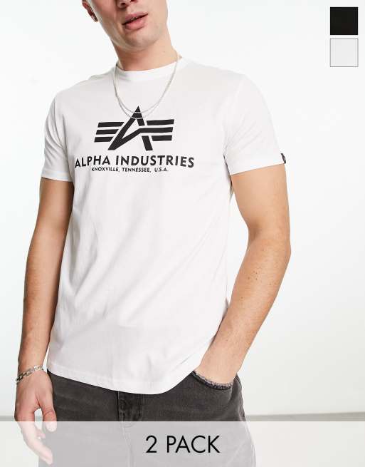 Alpha Industries – 2er-Pack Basic-T-Shirts in Schwarz und Weiß mit Logo
