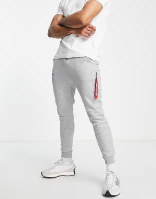 Alpha Industries – Cargo-Jogginghose aus Sweatshirt-Stoff in Kalkgrau mit <em>NASA</em>-Aufnäher