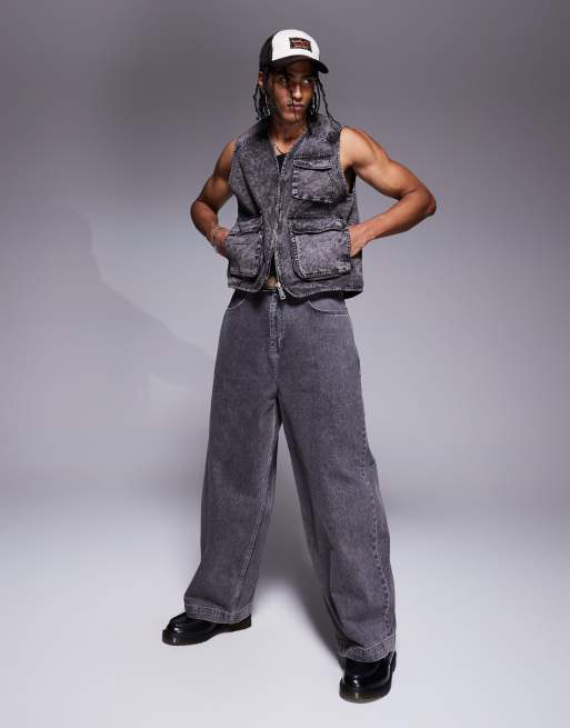 Alpha – Utility-Trägertop und -Shorts in schwarzer Acid-Waschung