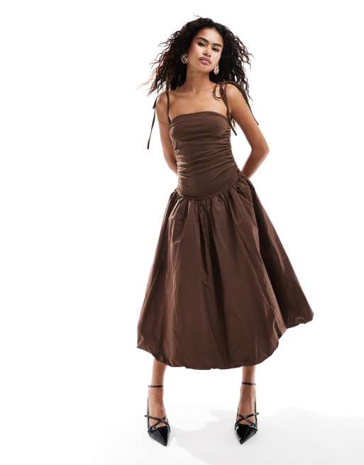 Amy Lynn – Alexa – Midikleid in Schokoladenbraun mit gebundenen Trägern