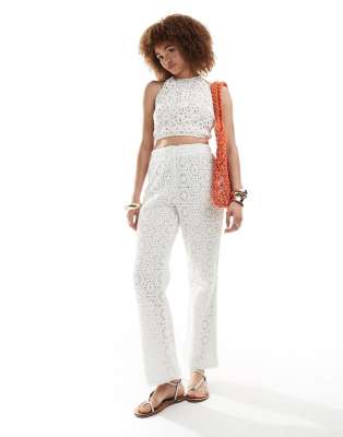 Amy Lynn – Set aus Häkelware in Weiß mit Neckholder-Oberteil und Hose