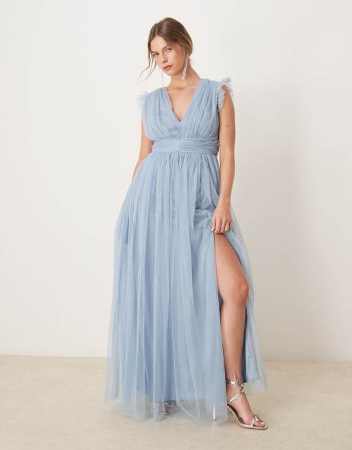 Anaya – Maxikleid in zartem Blau mit tiefem V-Ausschnitt