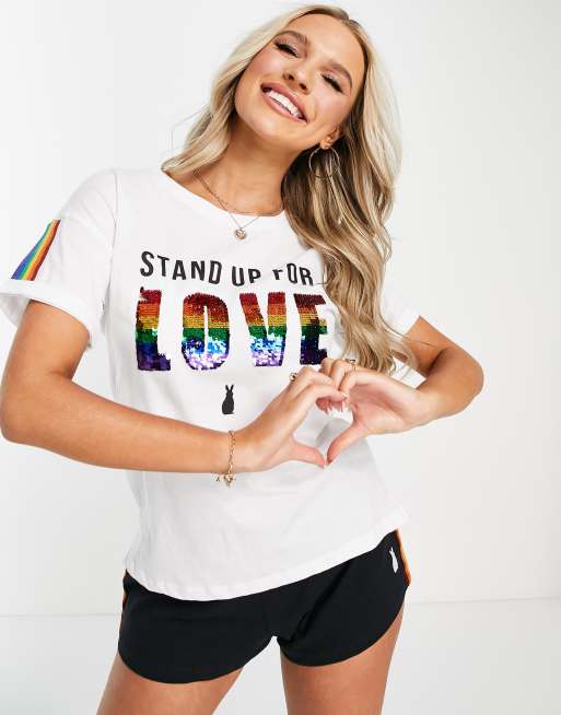 Ann Summers – Kurzer, mehrfarbiger Pyjama mit „Stand Up For Love“-Print