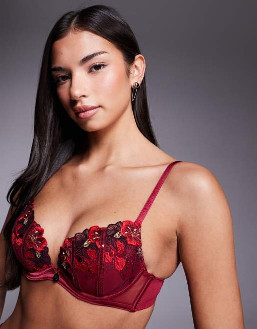 Ann Summers – Shimmering – Wattierter BH in Rot/Rosa mit tiefem Ausschnitt