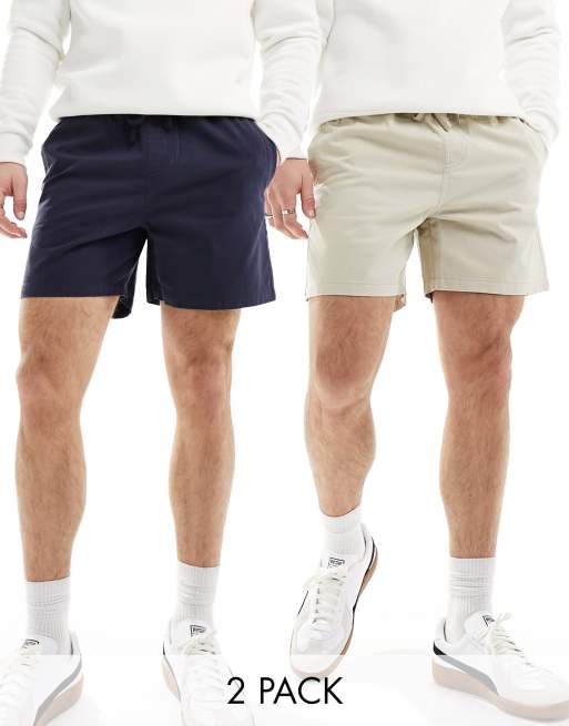Another Influence – 2er-Pack Chino-Shorts aus Baumwoll-Twill in Marineblau und hellem Stein