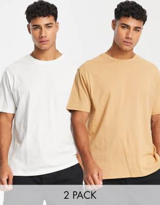 Another Influence – 2er-Pack kastig geschnittene T-Shirts in Dunkelgelb und Weiß