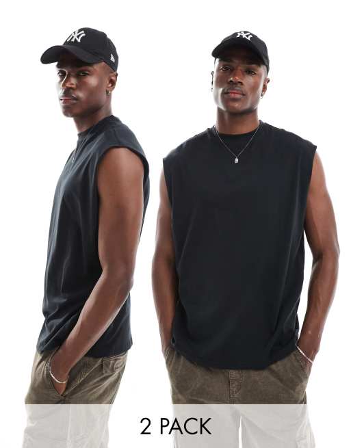 Another Influence – 2er-Pack Oversize-Trägershirts in Schwarz