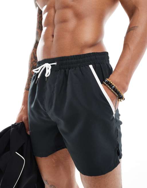 Another Influence – Badeshorts in Schwarz mit Paspelierung, Kombiteil