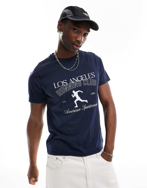 Another Influence – Los Angeles Running Club – Locker geschnittenes T-Shirt in Tiefblau