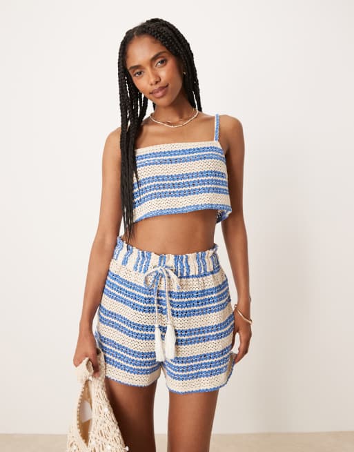 Aray – Strand-Outfit aus Häkelstoff mit blauen Streifen