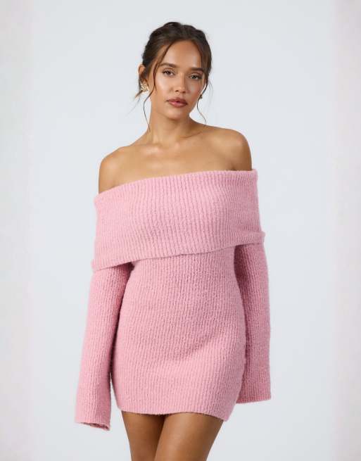 Aria Cove – Gestricktes Mini-Pulloverkleid in Rosa mit Carmen-Ausschnitt