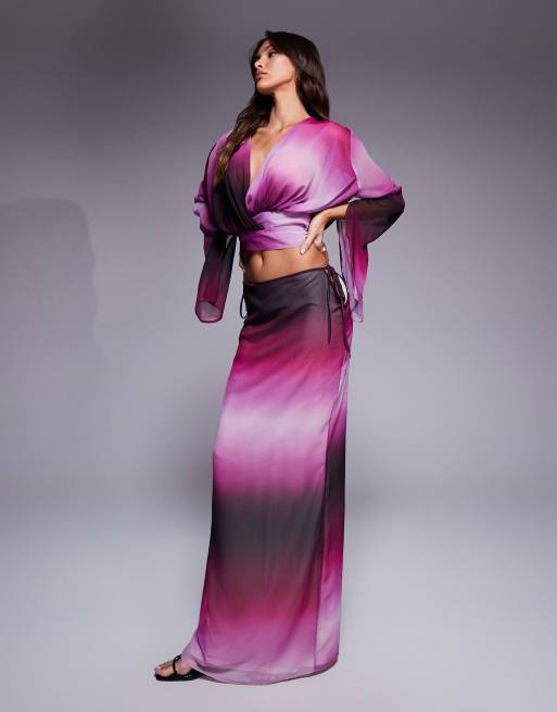 Aria Cove – Maxi-Strandrock aus Chiffon in Lila mit Farbverlauf und seitlicher Schnürung, Kombiteil