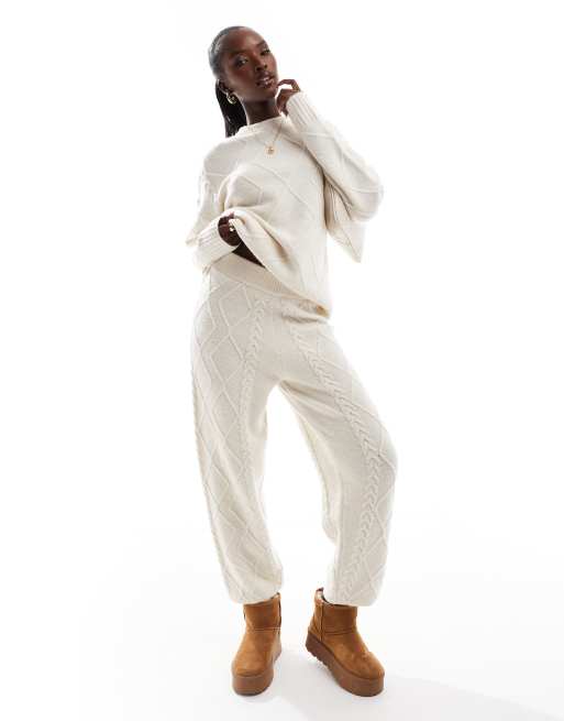 Aria Cove – Strick-Jogginghose in Creme mit Zopfmuster und Bündchendetail, Kombiteil