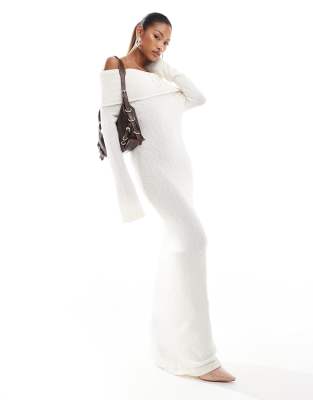 Aria Cove – Strukturiertes Maxi-Pulloverkleid in Cremeweiß aus Bouclé mit Carmen-Ausschnitt und Umschlag