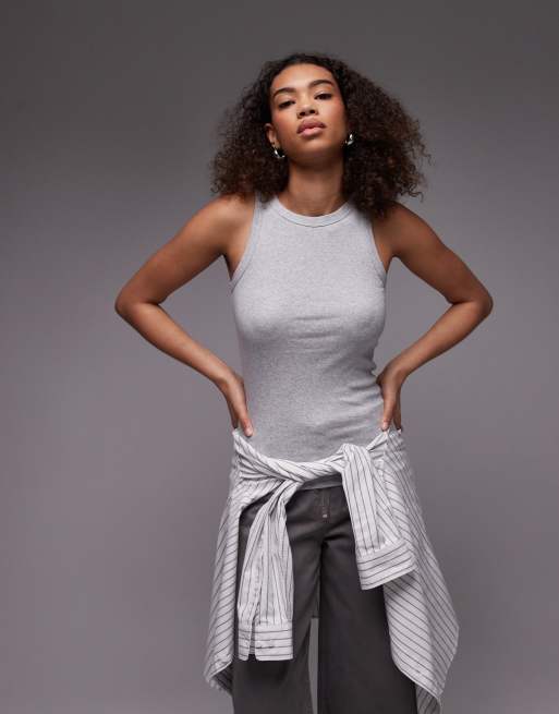 ARKET – Geripptes Jersey-Trägertop in Grau meliert