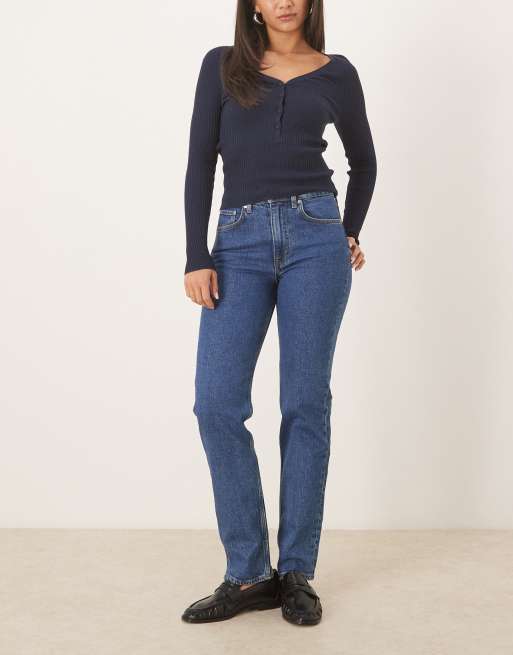 ARKET – Jade – Lange, schmale Stretch-Jeans mit Rinse-Waschungin Mittelblau