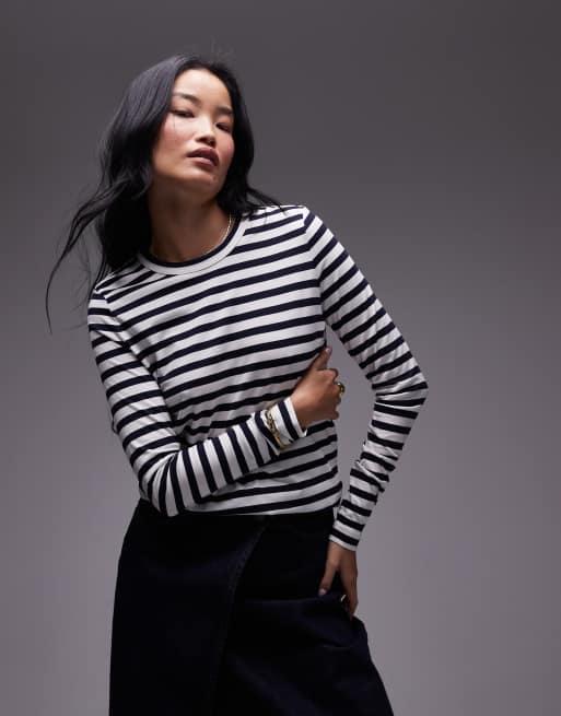 ARKET – Langärmliges, gestreiftes T-Shirt in Marineblau und Weiß
