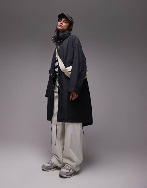 ARKET – Leichter, beschichteter Longline-Utility-Parka in Grau mit verstaubarer Kapuze