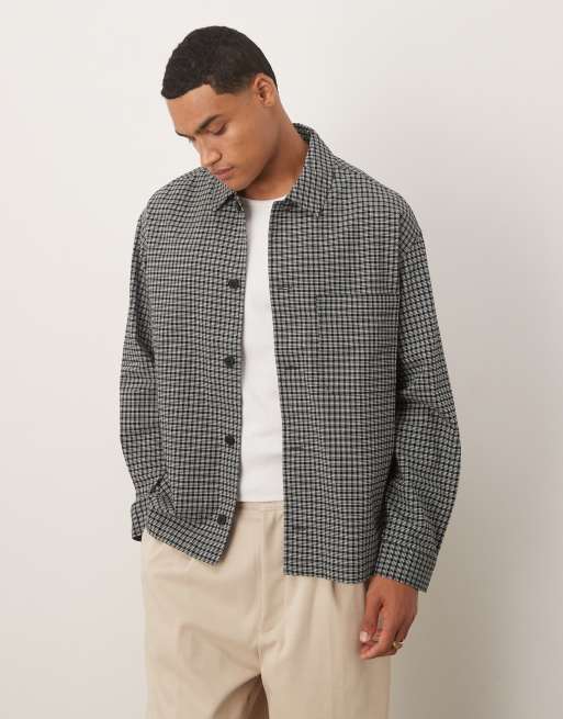 ARKET – Locker geschnittene Hemdjacke aus Seersucker mit hohem Baumwollanteil in Schwarz und Weiß kariert