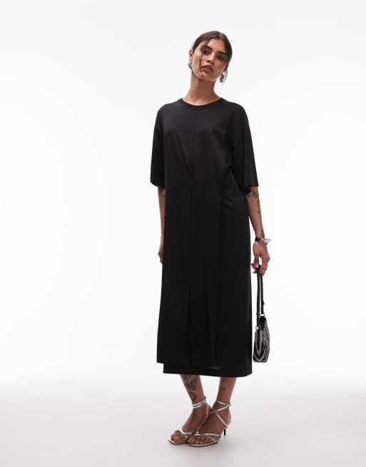 ARKET – Midaxi-Kleid aus Baumwollmix in Schwarz mit halblangen Ärmeln und gewickelter Taille