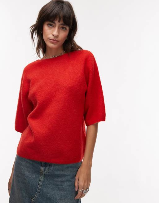 ARKET – Strickoberteil aus Alpaka-Wollmix in Rot mit V-Ausschnitt hinten