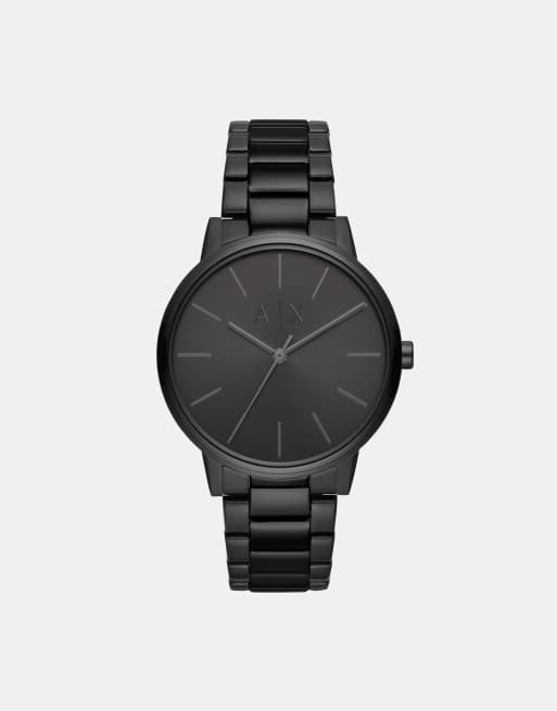 Armani Exchange – Armbanduhr aus schwarzem Stahl mit drei Zeigern