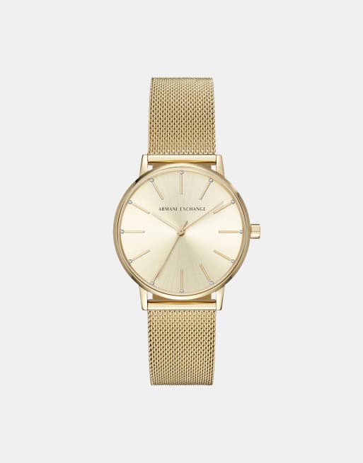 Armani Exchange – AX5536 – Armbanduhr mit goldfarbenem Netzdesign