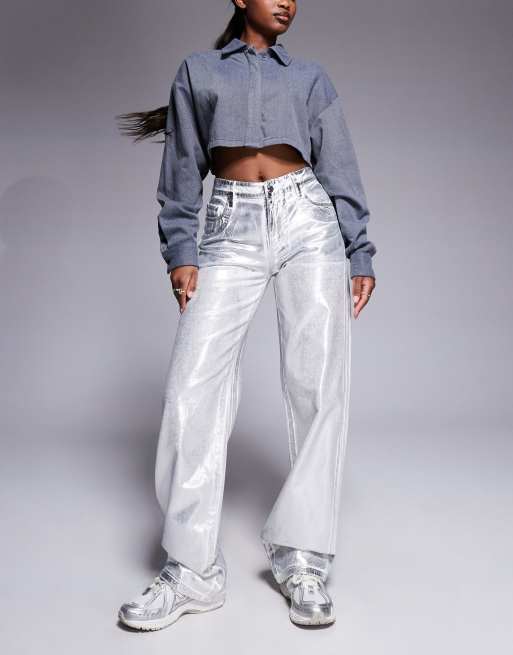 Armani Exchange – Jeans in Silber mit Metallic-Beschichtung