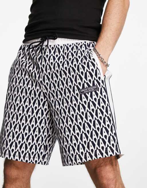 Armani Exchange – Jersey-Shorts in Marineblau mit Logomuster