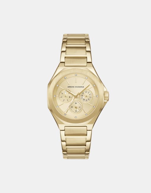 Armani Exchange – Multifunktionale Damenuhr aus Edelstahl in Goldoptik