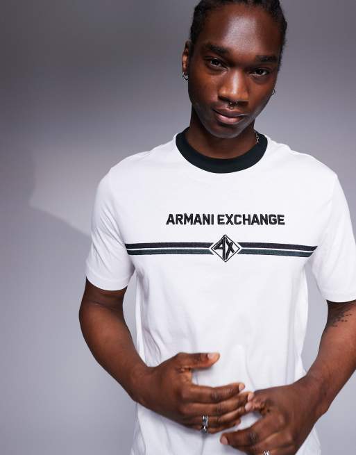 Armani Exchange – Ringer-T-Shirt in Weiß mit Logo auf der Brust