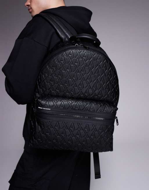 Armani Exchange – Rucksack aus schwarzem Kunstleder mit Logo-Muster