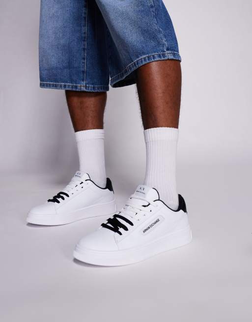 Armani Exchange – Sneaker in Weiß und Blau mit Logo und dicker Sohle
