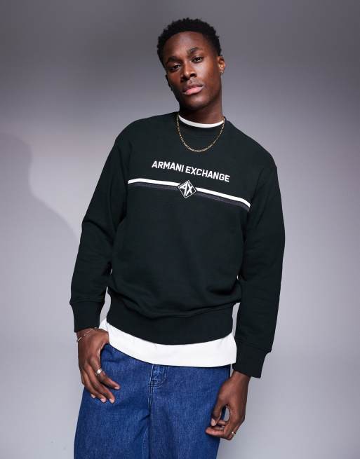 Armani Exchange – Sweatshirt in Dunkelgrün mit Logo auf der Brust