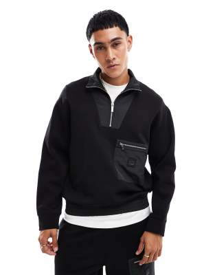 Armani Exchange – Sweatshirt in Schwarz mit kurzem Reißverschluss und Reißverschlusstaschen, Kombiteil