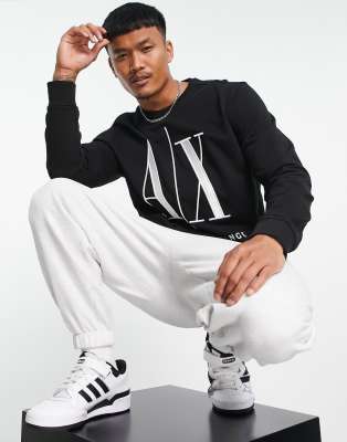 Armani Exchange –Sweatshirt in Schwarz mit Rundhalsausschnitt und Markenlogo