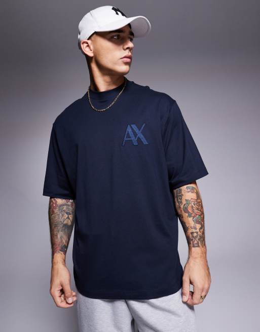 Armani Exchange – T-Shirt in Marineblau mit farblich abgestimmtem Logo