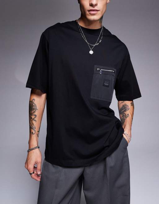 Armani Exchange – T-Shirt in Schwarz mit Brusttasche mit Reißverschluss