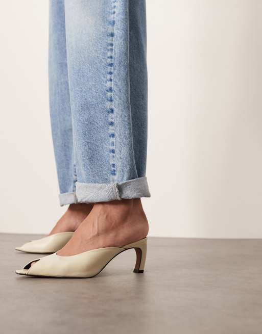 ARRANGE – Agnes – Hochwertige Leder-Mules in Wollweiß mit Absatz