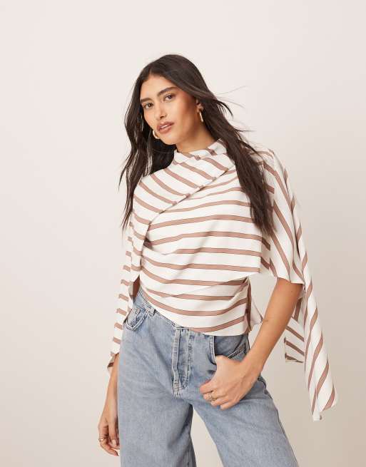 ARRANGE – Asymmetrisches Oberteil in Camel gestreift mit drapiertem Ausschnitt