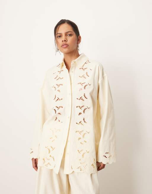 ARRANGE – Bestickte Bluse in Ecru mit Lochmuster, Kombiteil