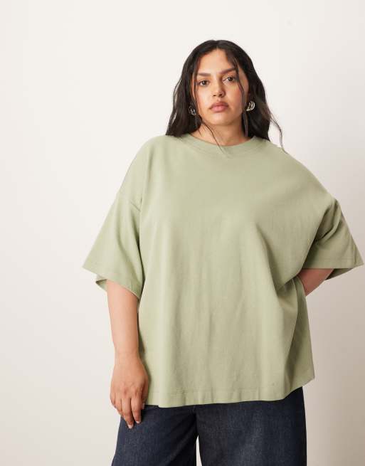 ARRANGE Curve – Hochwertiges Oversize-T-Shirt aus schwerem strukturiertem Jersey in Pistaziengrün, Kombiteil