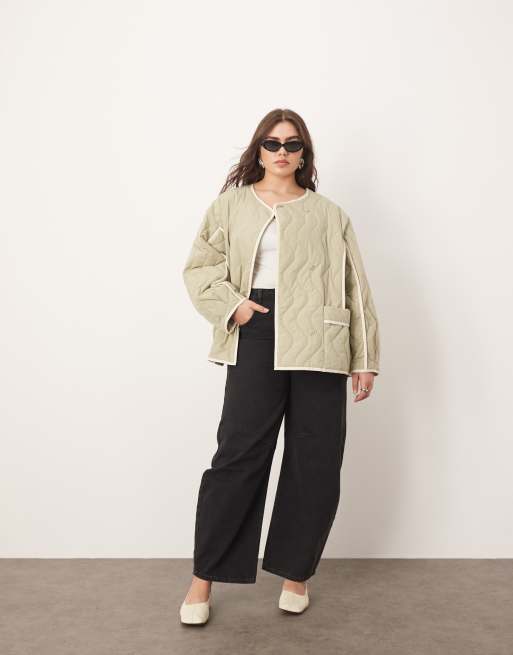 ARRANGE Curve – Oversize-Steppjacke in Salbeigrün mit Kontrastbesatz