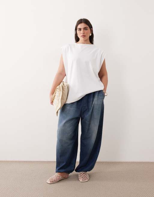 ARRANGE Curve – Quinn – Barrel-Jeans in blauer Waschung mit Tunnelzug-Bund