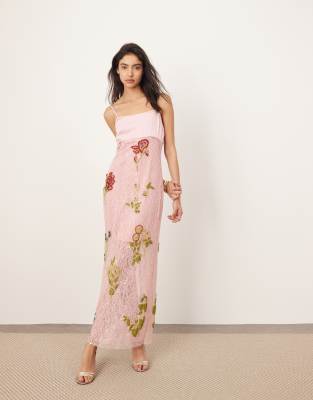 ARRANGE – Gerade geschnittenes Maxikleid in Rosa mit kontrastierendem Oberteil und Pflanzenmotiven