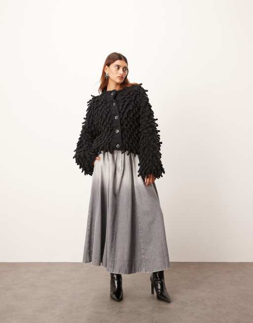 ARRANGE – Maxirock aus verwaschenem Denim in Grau