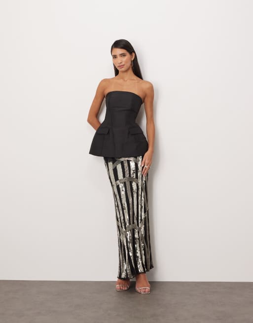 ARRANGE – Maxirock in Schwarz mit linearer Art-déco-Verzierung